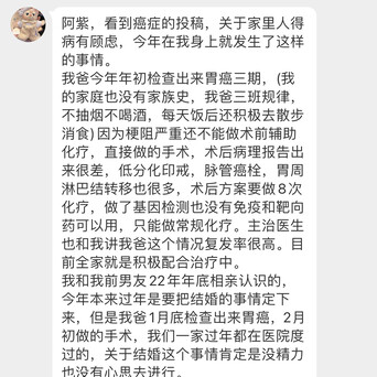 【阿紫,看到癌症的投稿,关于家里人得病有顾虑,今年在我身上就发生了这样的事情。