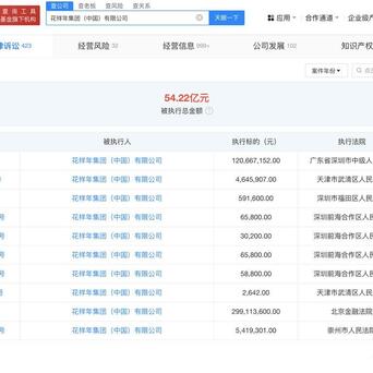 天眼风险信息显示,花样年集团(中国)有限公司现存30余条被执行人信息河南期货配资,被执行总金额超54亿元。此外,该公司还存在多条限制消费令、失信被执行人(老赖)及终本案件信息。